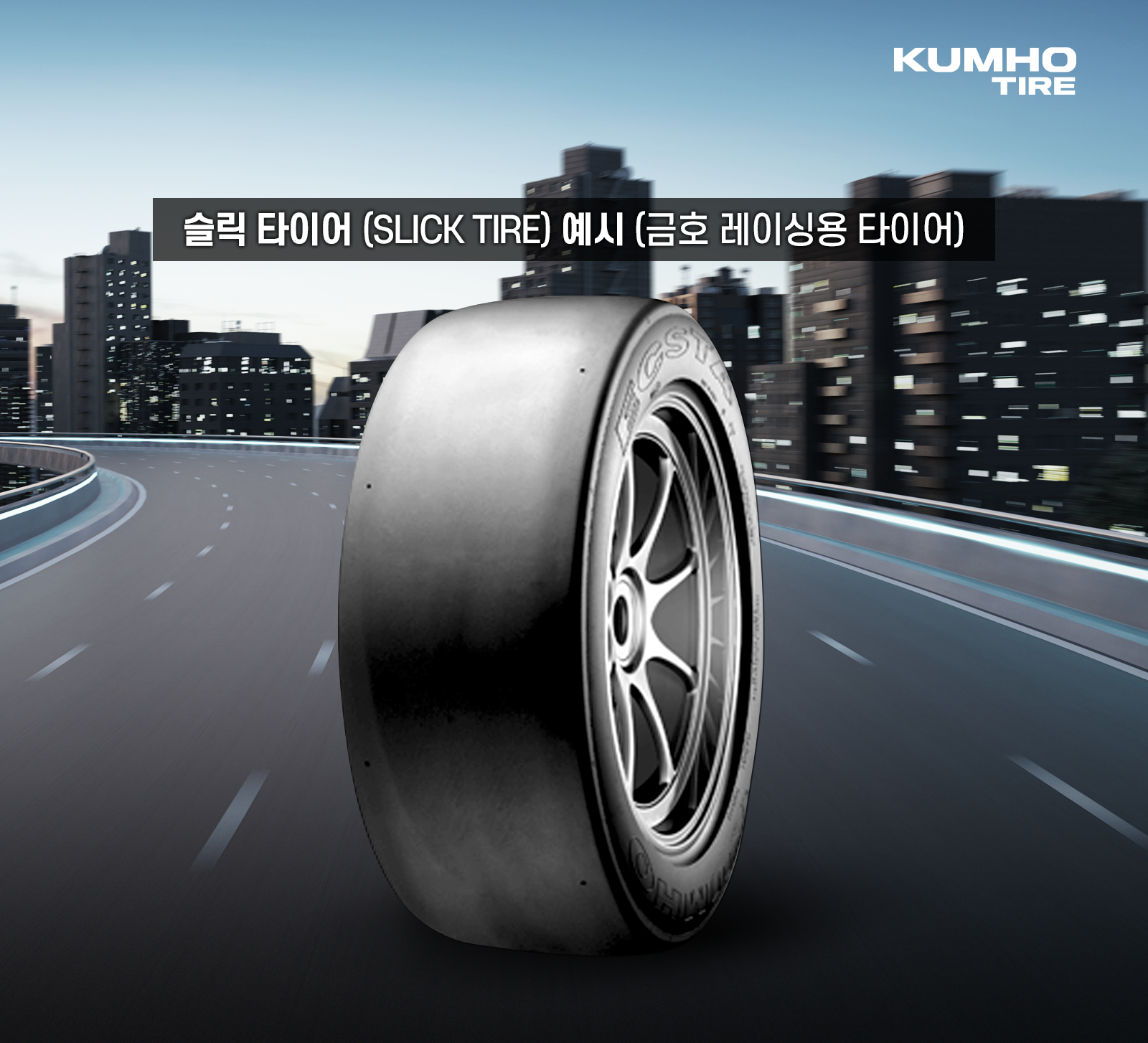 레이싱용 타이어는 패턴이 없는 슬릭 타이어로,