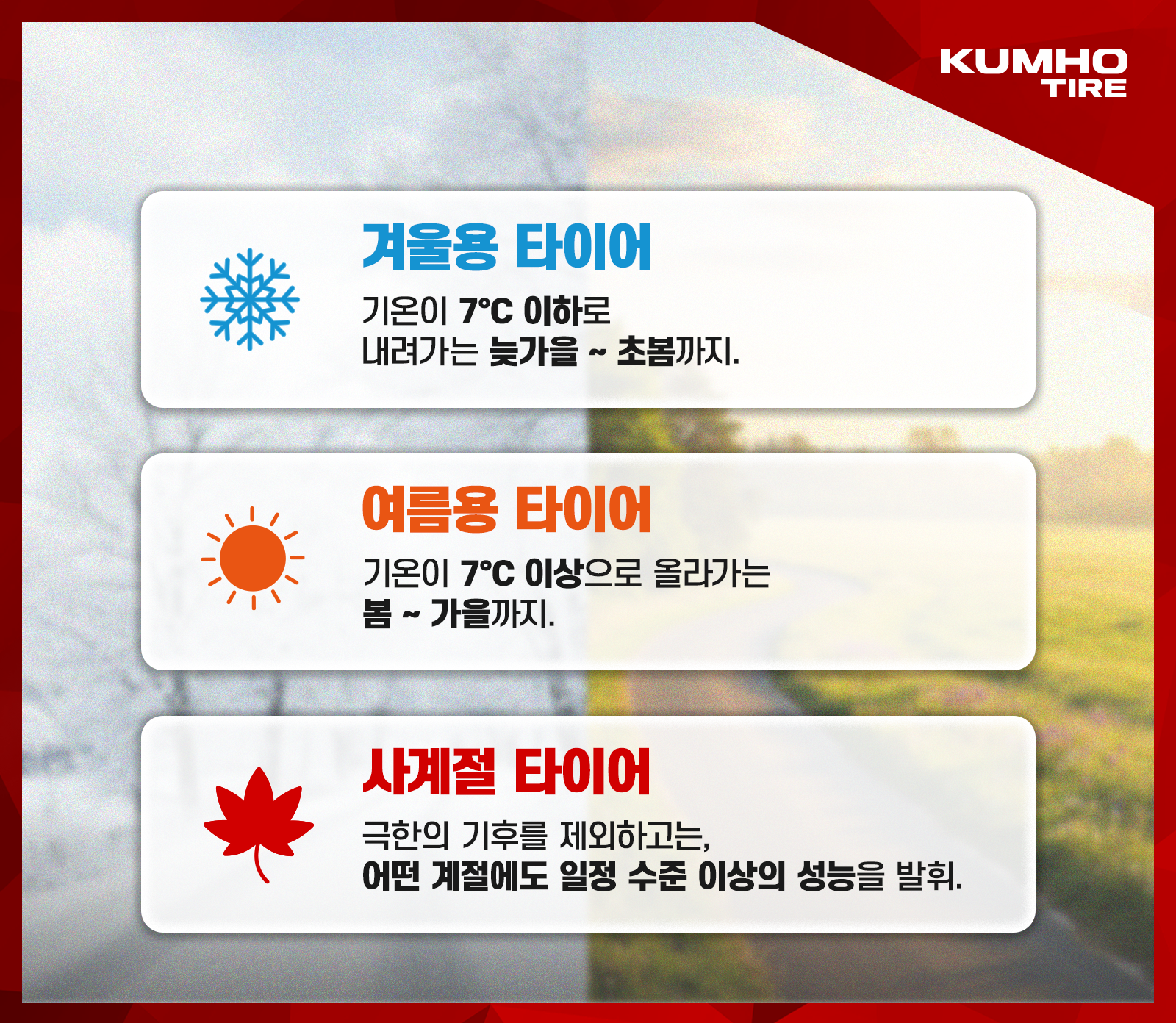 금호타이어의 사계절 타이어 라인업으로