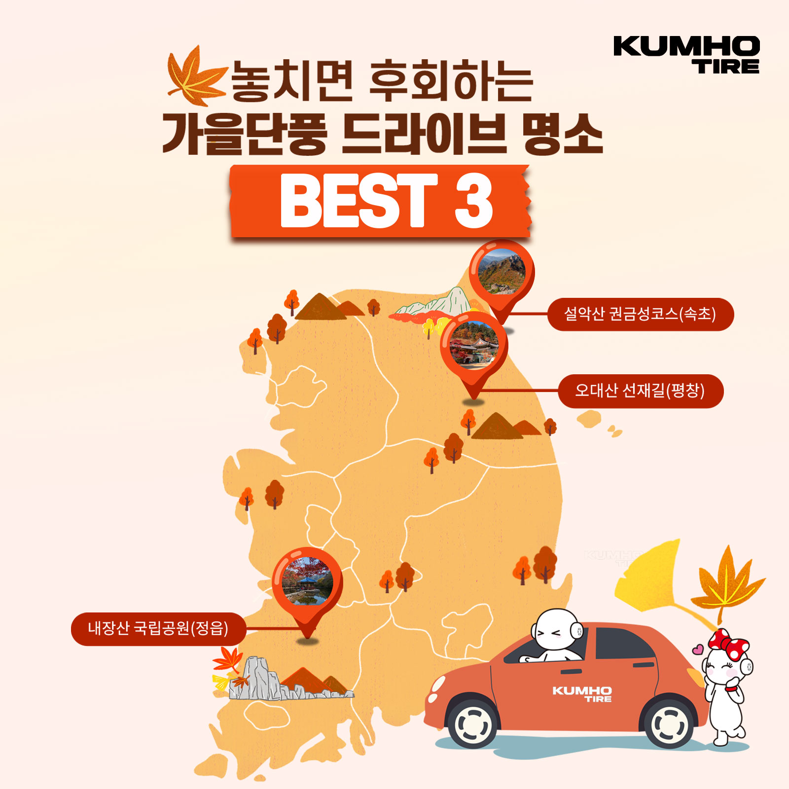 금호타이어가 추천하는 가을 단풍 드라이브 명소를 주목해 주세요! 🚗🍂
