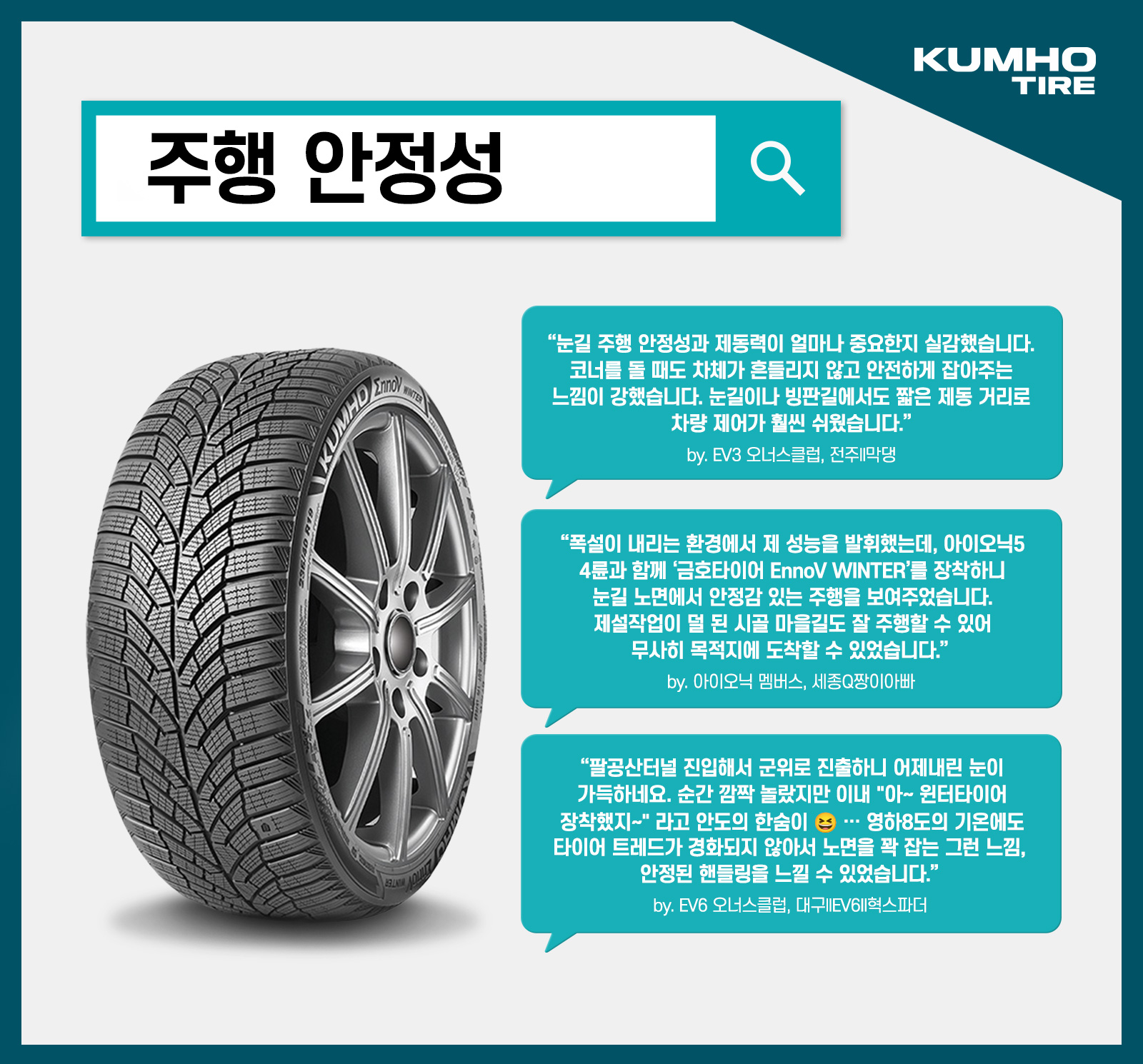 눈길이나 빙판길에서도 짧은 제동 거리로 차량 제어가 훨씬 쉬웠습니다.”
