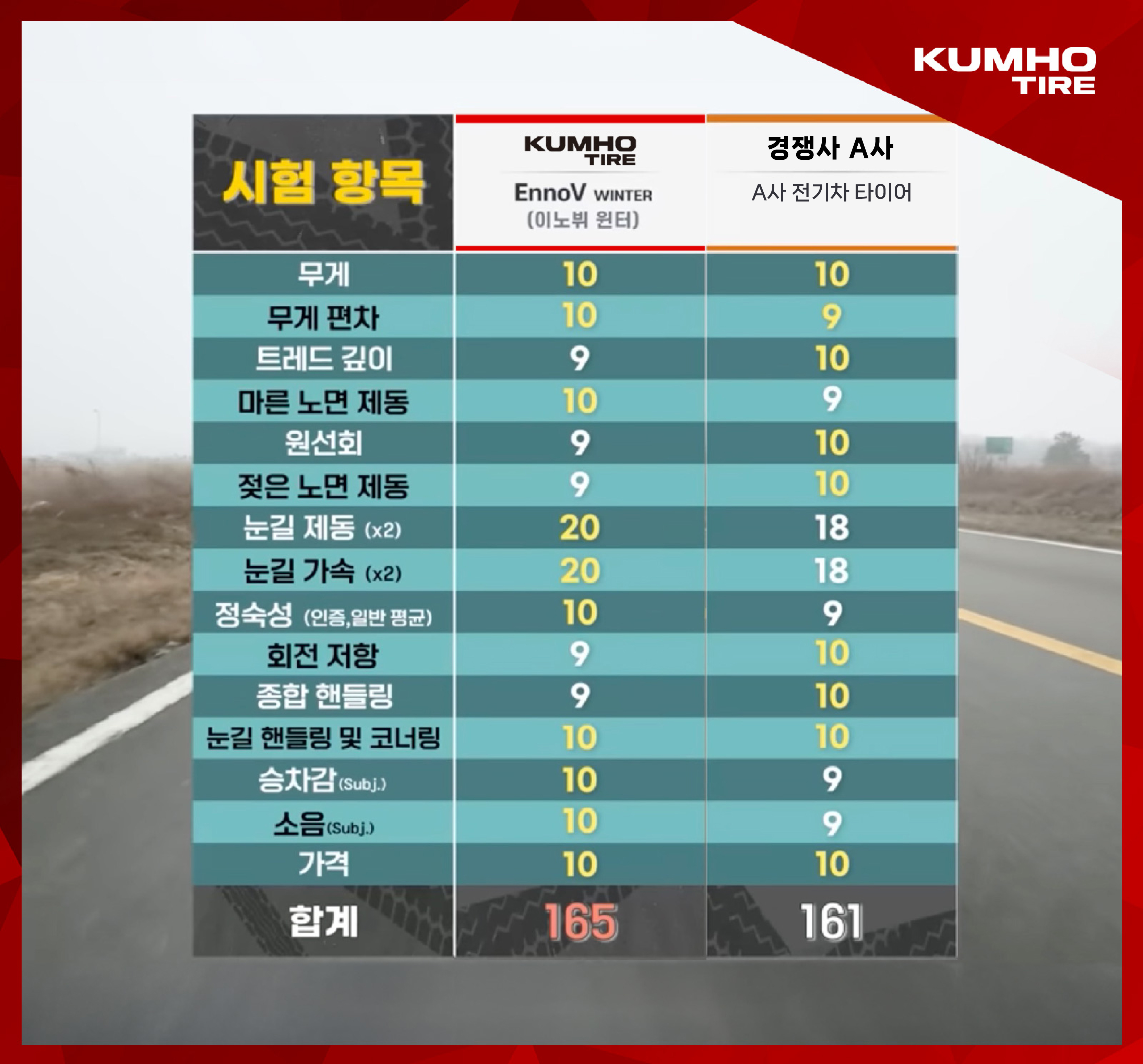 테스트 결과, 금호타이어 이노뷔 윈터는
