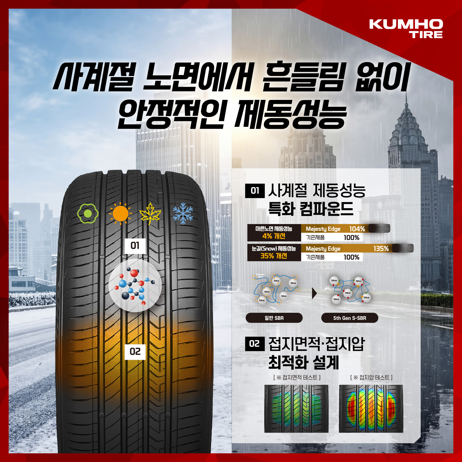 계절 변화와 관계없이 노면과의 접지력을 안정적으로 유지하여